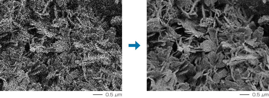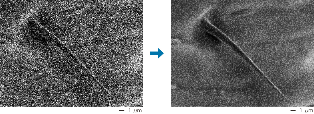 SHLバージョンの対物レンズの中に搭載された新検出器UHDにより、試料から発生した電子の検出効率が大幅に向上し、高S/Nな像取得ができます。
