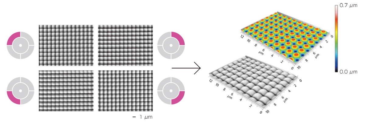 5分割の半導体型検出素子により、観察目的に応じて信号を選別することができます。