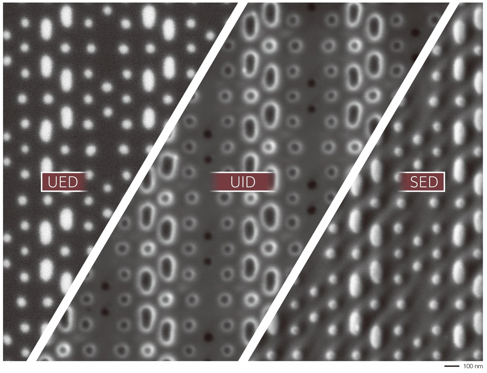 さらに、上方インレンズ検出器 (UID) による電位コントラスト観察において威力を発揮します。